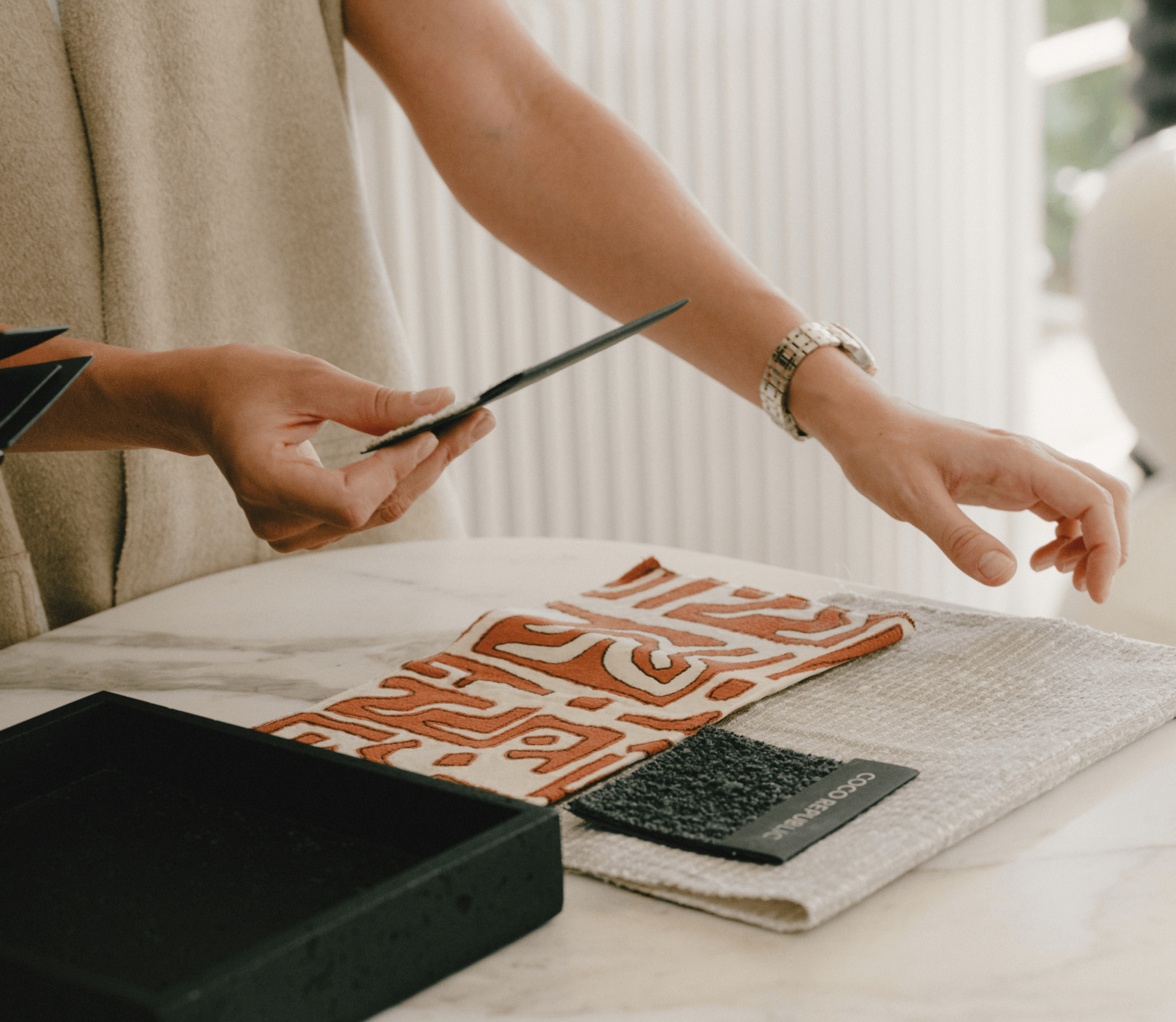 Our Design Studios are our centre for inspiration and creativity. Designed to foster collaboration between the client and designer, our spaces are adaptable to meet the unique requirements of each project. Found in our showrooms, our studios offer a hands-on experience, serving as a visual source of inspiration. Housing a range of fabric samples, paint swatches, flooring materials, and other physical materials essential to the design process.